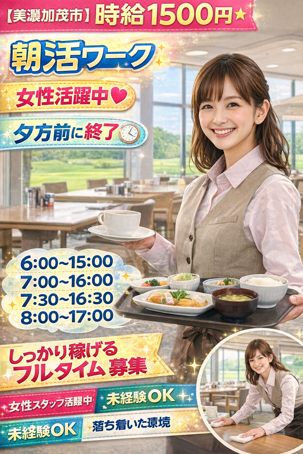 【美濃加茂市】時給1500円★16時前後に終わる♪ゴルフ場レストラン/フルタイム募集のお仕事が追加されました!